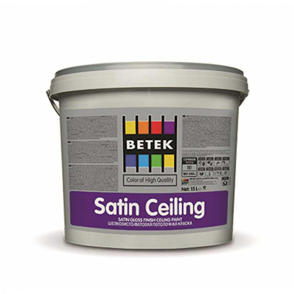 BETEK SATIN CEILING - белая матовая акриловая краска для потолков с высокой степенью укрывистости. Не пузырится и не отслаивается. Равномерно распределяется по поверхности без полошения. Betek Satin Ceiling подходит для окраски таки поверхностей как штукатурка, шпатлёвка, гипсокартон, а так же для обновления старых не мелящихся лакокрасочных покрытий. Способы нанесения: кисть, валик, распыление.