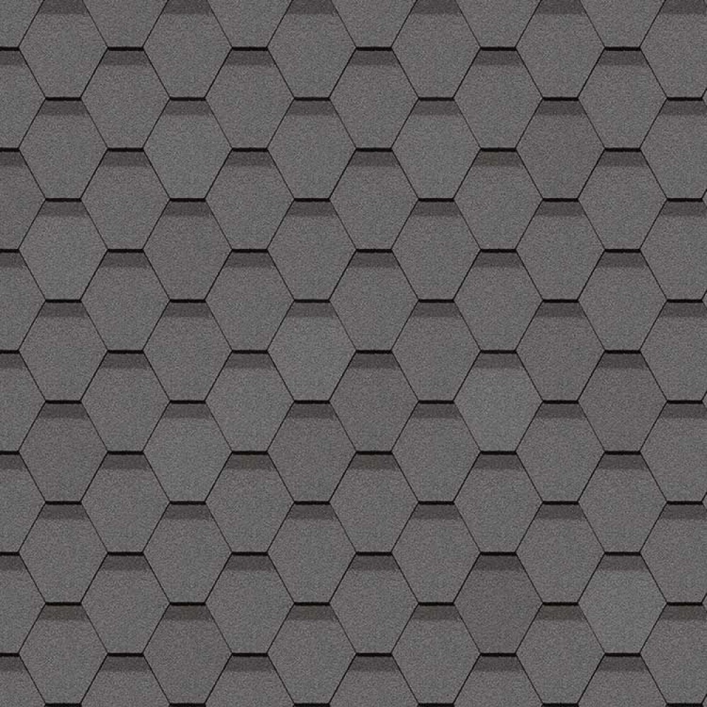 Известный российский производитель кровли представляет гибкую черепицу Docke PIE Standard с уникальными техническими характеристиками. Созданная на основе окисленного битума, черепица обладает прочностью и гибкостью. В коллекции Сота стоит обратить внимание на черепицу серого цвета. Глубокий насыщенный цвет с затемнением и шестигранная нарезка создадут эффект объемной кровли.