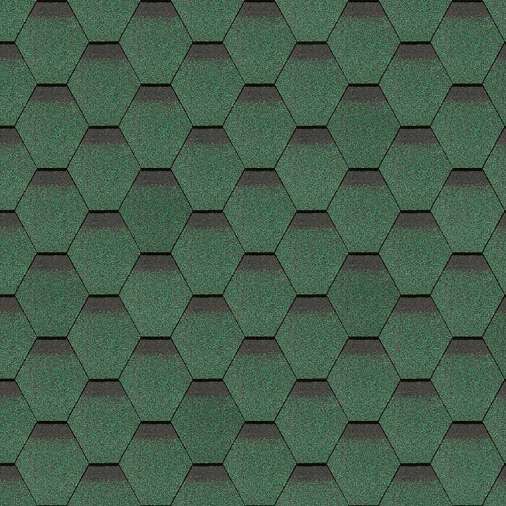 Зеленая черепица шестигранной формы отлично подойдет для кровли жилых и технических зданий. Оригинальная нарезка создает выразительный узор, который органично впишется в природную среду. Небольшие затемнения визуально добавляют объем благородному покрытию, которое останется неизменным долгие годы.