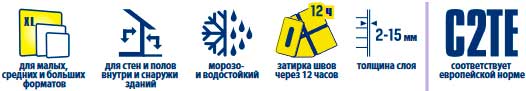 | РАЗМЕР ПЛИТКИ, см | МЕСТО НАНЕСЕНИЯ | РАЗМЕР ЗУБА ТЕРКИ, мм | РАСХОД 1м2, кг |