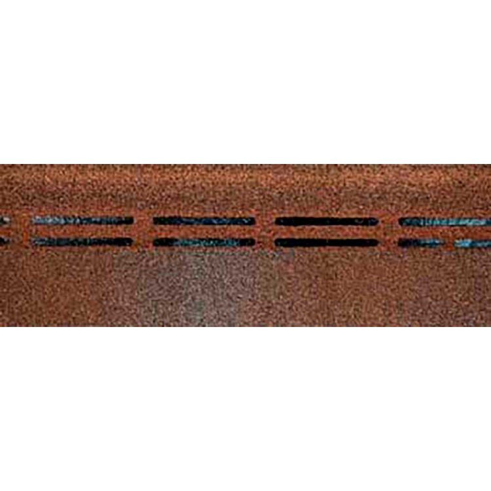 Коньково-карнизная черепица представляет собой прямоугольные гибкие листы, изготовленные из модифицированного битума и стеклохолста. Поверхность защищена битумной окрашенной крошкой, которая придает декоративный вид и защищает от механических повреждений. Монтируется материал при помощи двойной клеевой системы, листы укладываются внахлест друг на друга. К преимуществам относятся: