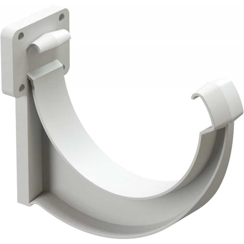 Кронштейн желоба пластиковый предназначен для крепления желоба на кровлях с лобовой доской, либо в комплекте с удлинителем на кровлях без лобовой доски.