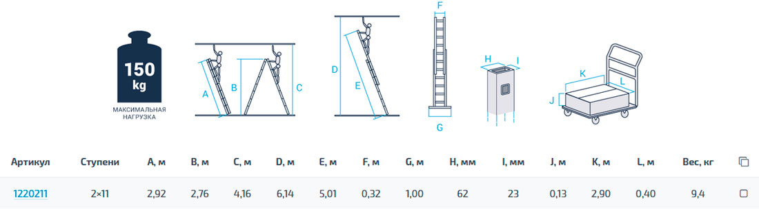 - Варианты использования: приставная лестница, приставная выдвижная лестница, стремянка