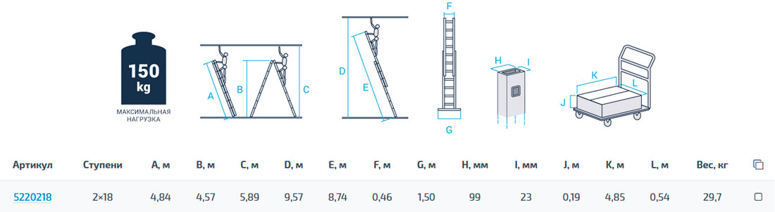 - Варианты использования: приставная лестница, приставная выдвижная лестница, стремянка