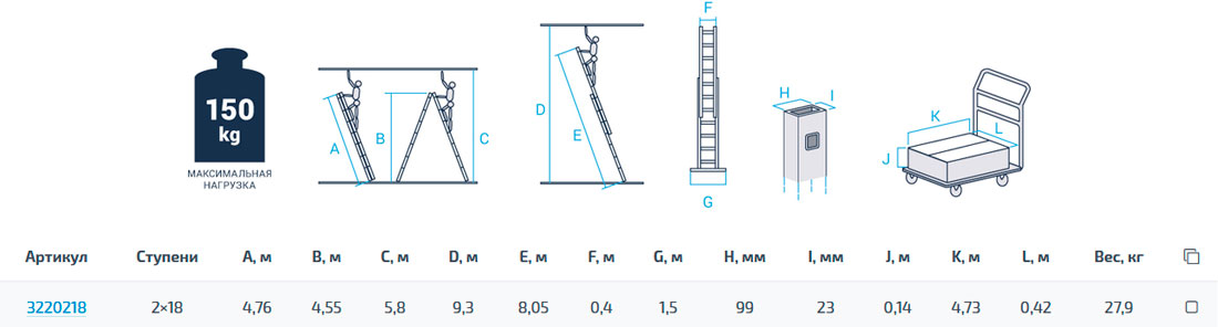 - Варианты использования: приставная лестница, приставная выдвижная лестница, стремянка