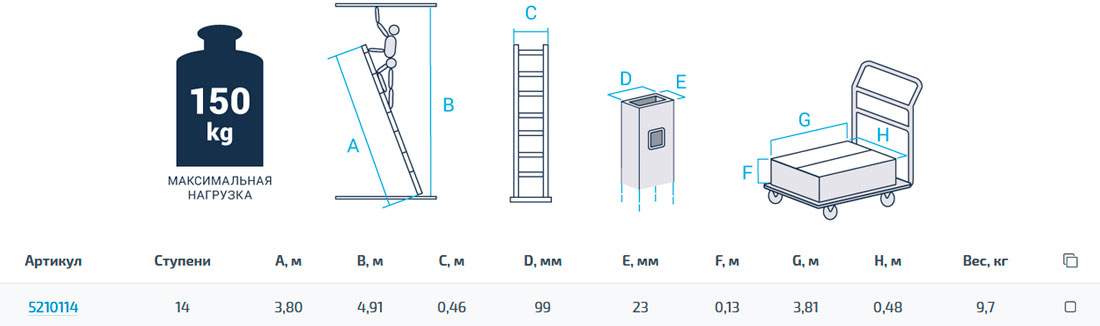 - Рифлёные ступени 30 мм с шагом 260 мм для безопасного подъёма и спуска