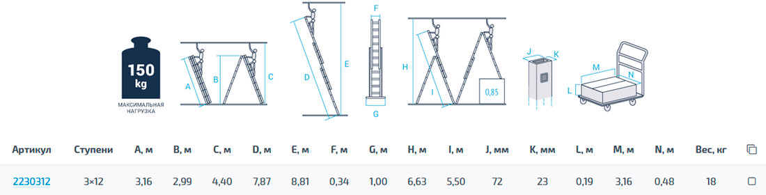 - Верхняя секция легко снимается и устанавливается и может использоваться как отдельная приставная лестница