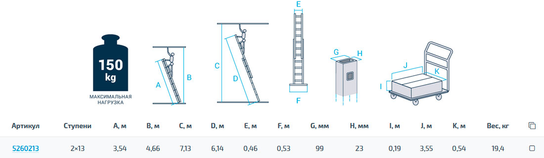- обе секции могут быть использованы как отдельные приставные лестницы