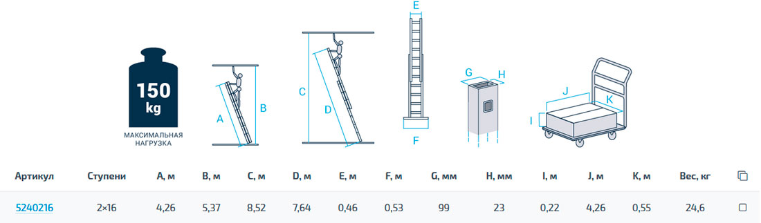 - алюминиевые направляющие кронштейны надёжно удерживают выдвижную секцию