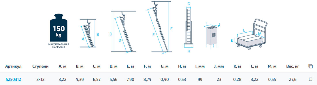 - верхняя секция снабжена колёсами для удобного раскладывая по стене