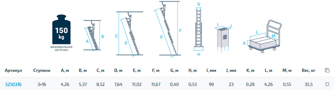 - верхняя секция снабжена колёсами для удобного раскладывая по стене