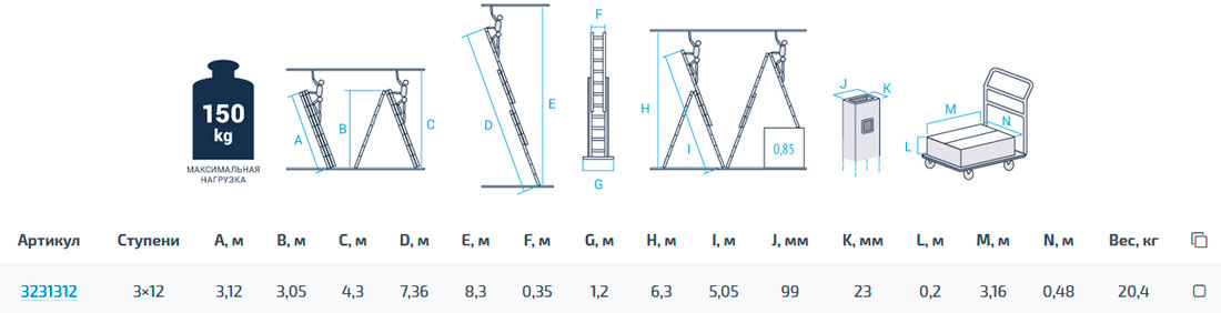 - Верхняя секция легко снимается и устанавливается и может использоваться как отдельная приставная лестница