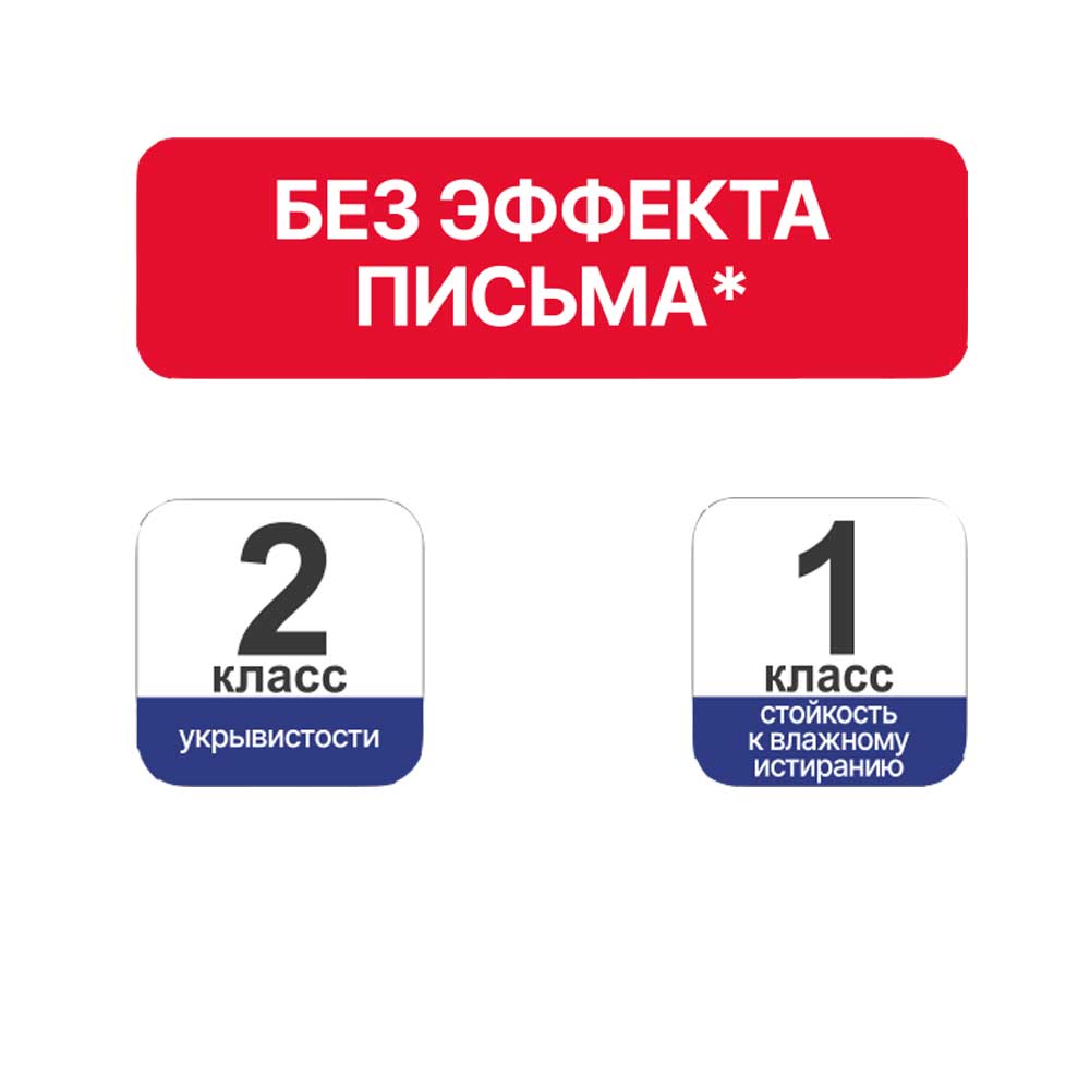 Дает глубокий цвет без эффекта «письма» (поверхность не лоснится и не меняет оттенок от касаний). Доступна колеровка в яркие, сочные цвета.