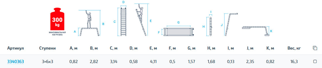 - Варианты использования: помост, приставная лестница, приставная согнутая лестница