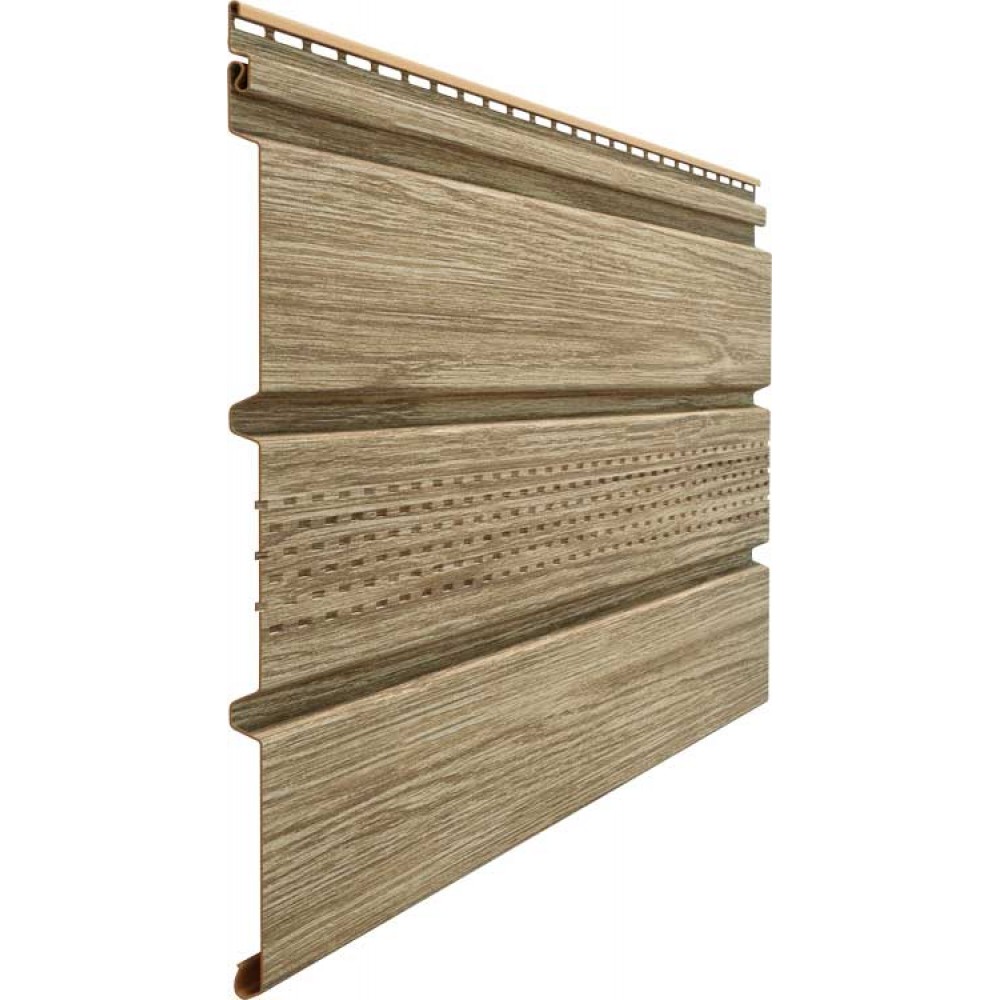 Оттенок софитов орех выгодно подчеркнет кровлю в оттенках серого и коричневого, а так же защитит подкровельное пространство дома.
