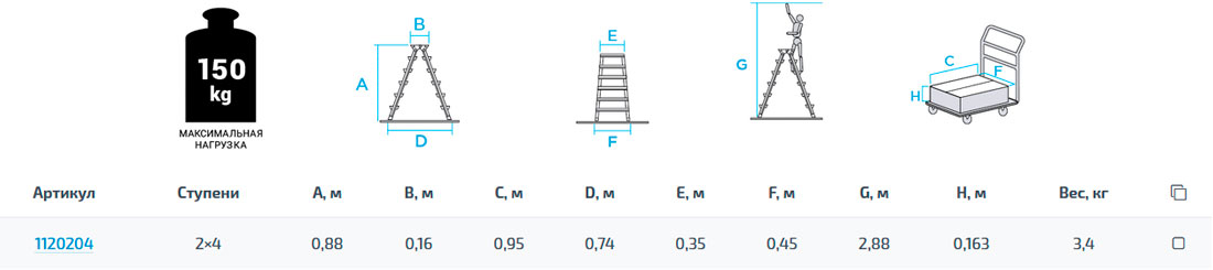 - Прочное крепление ступеней к боковинам шестью заклёпками для более высокой устойчивости конструкции