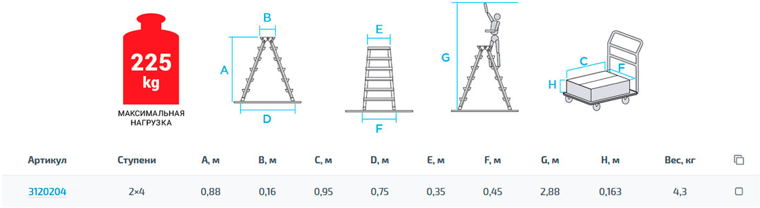 - Прочное крепление ступеней к боковинам шестью заклёпками для более высокой устойчивости конструкции