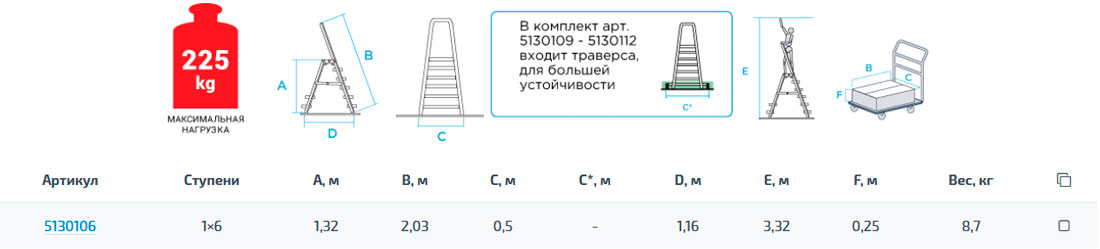 - прочное крепление ступеней к боковинам 6 заклёпками придаёт конструкции высокую устойчивость