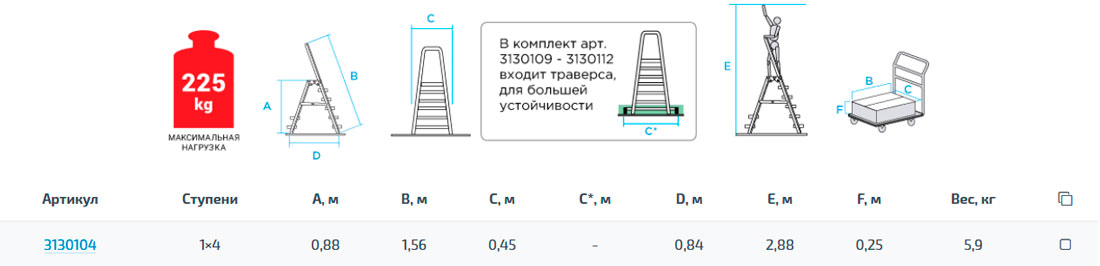 - Прочное крепление ступеней к боковинам шестью заклёпками для более высокой устойчивости конструкции