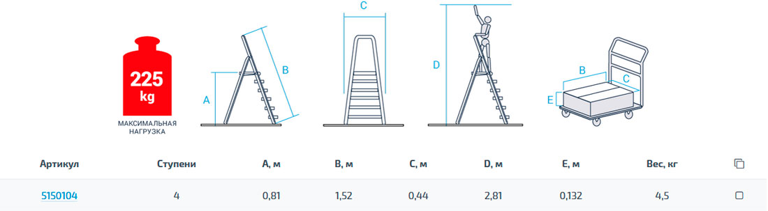 - Прочное крепление ступеней к боковинам шестью заклёпками для более высокой устойчивости конструкции