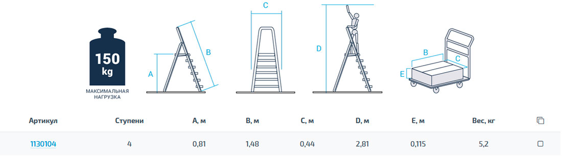 - Прочное крепление ступеней к боковинам шестью заклёпками для более высокой устойчивости конструкции