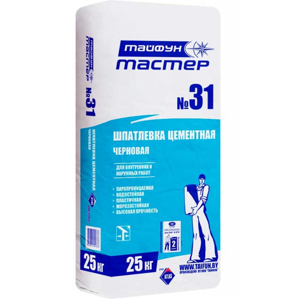 Шпатлевка цементная Тайфун Мастер №31 25кг. применяется для внутренних и наружных работ; для ручного нанесения; для предварительного (стартового) выравнивания; для предварительной подготовки стен и потолков.