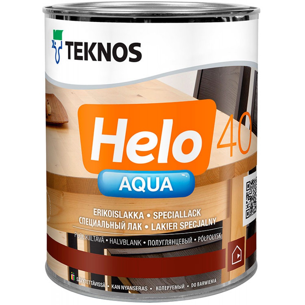 Водоразбавляемый лак Teknos Helo Aqua 40 Semigloss 0,9л. разработан на основе полиуретановой дисперсии. Образует на поверхности полуглянцевое покрытие, которое добавляет изысканности и дороговизны изделиям из древесины.
