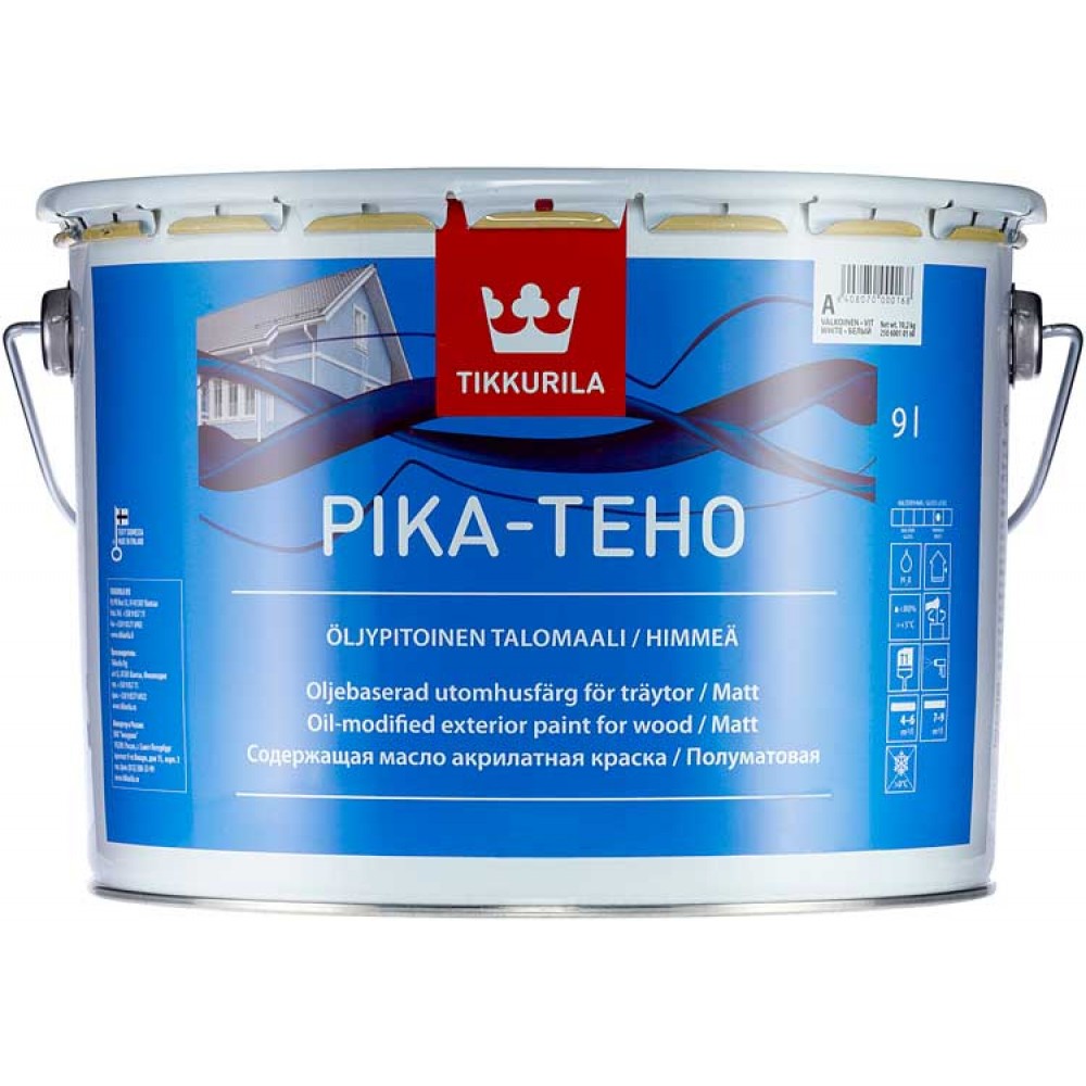 Акрилатная краска Tikkurila Pika-Teho 9л. предназначена для защиты наружной необработанной или обработанных промышленным способом, или окрашенных ранее красками для наружных работ деревянных поверхностей.