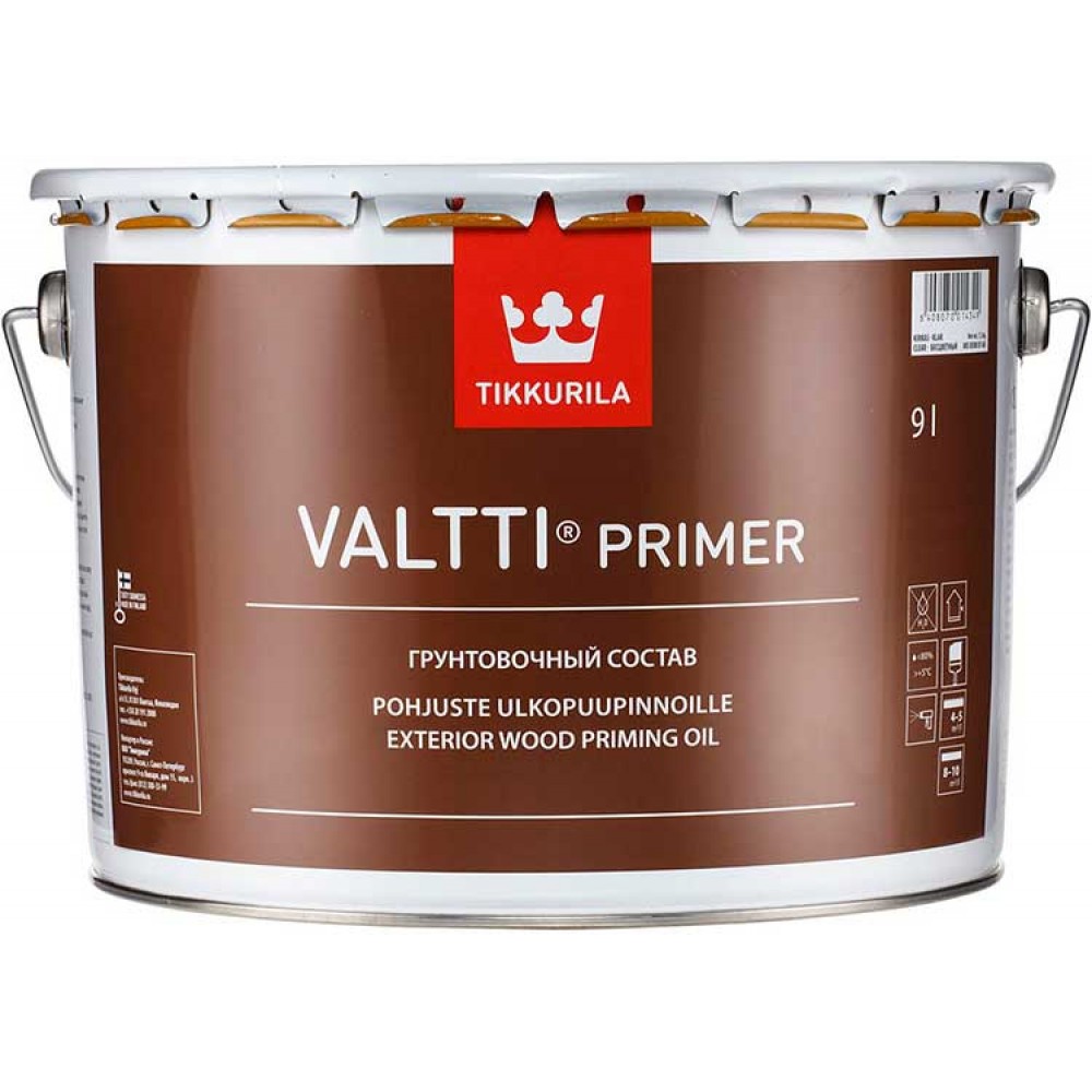 Грунтовка Тиккурила Валтти Праймер заколерованная под дерево (цвет 337F) обеспечивает более хорошую защиту от ультрафиолетового излучения. Не применяется для грунтовки внутренних поверхностей теплиц. Применение в других целях и не в соответствии с инструкцией строго запрещено.