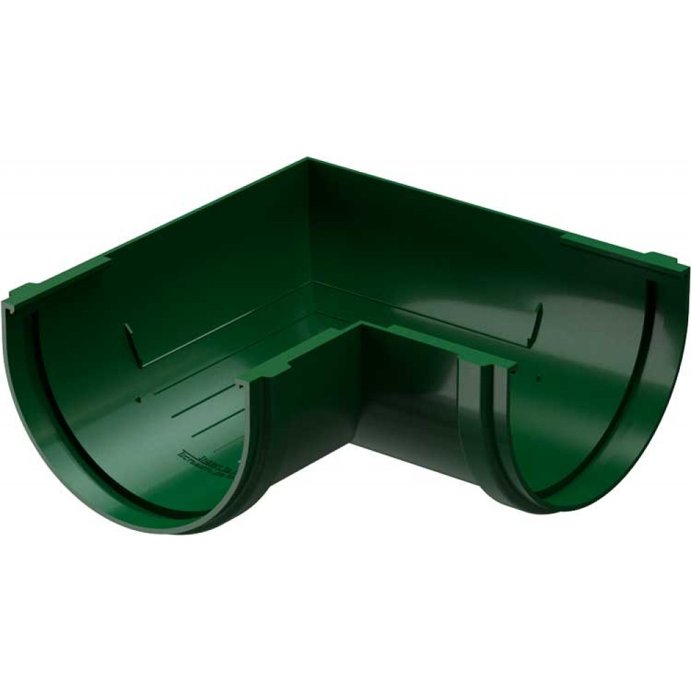 Угловой элемент устанавливается как на внешних, так и на внутренних углах кровли и предназначен для соединения желобов под углом 90˚ в целях изменения направления движения воды.